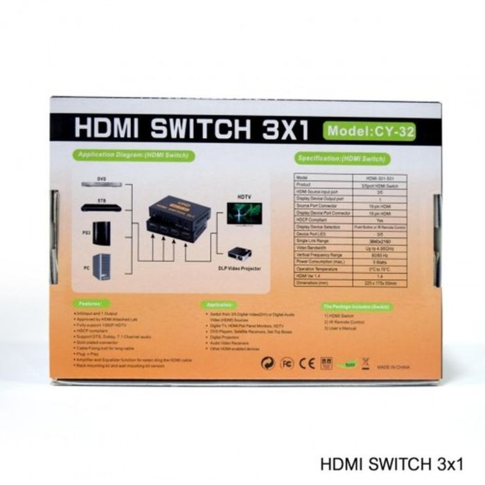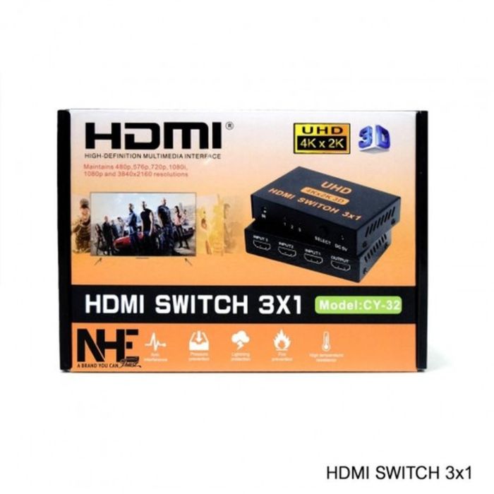 - سويتش 3 مخارج HDMI ثلاثي الأبعاد دقة UHD مع ريموت من NHE