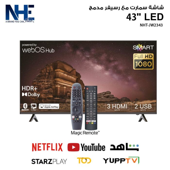 - تلفزيون 43 بوصة LED ذكي FHD من NHE + قاعدة حائط مجانا