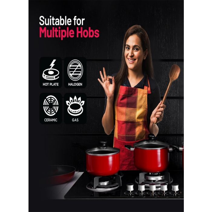 - تتميز مجموعة أواني الطهي بطبقة غير لاصقة، مما يسمح بخيارات طهي أقل دهونًا - لا حاجة إلى زبدة أو زيت زائدين