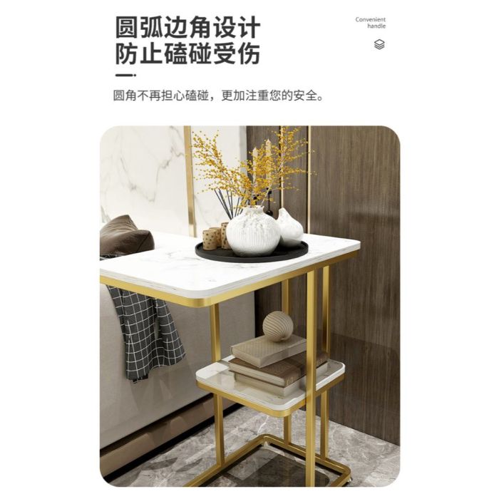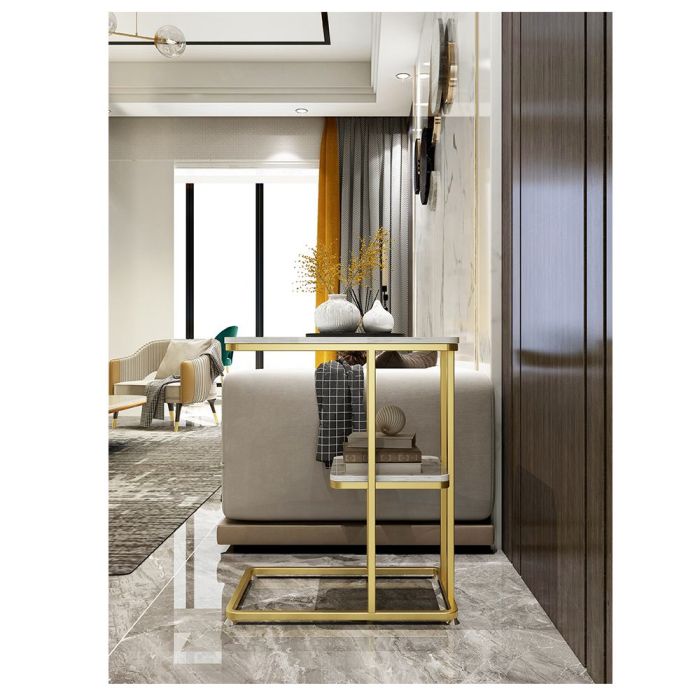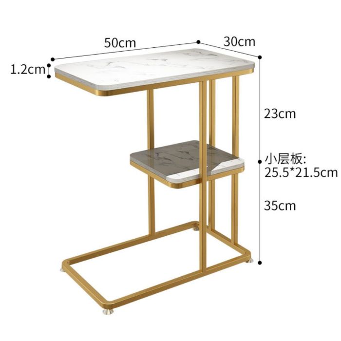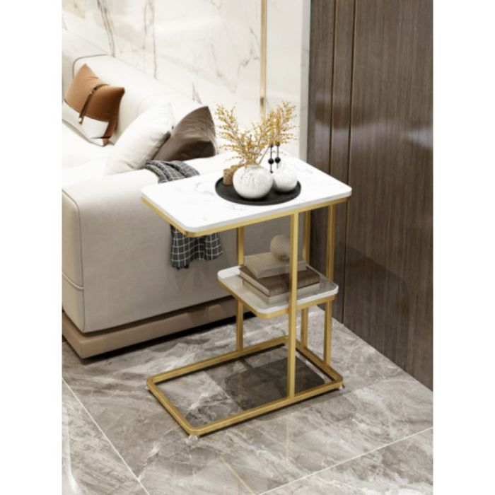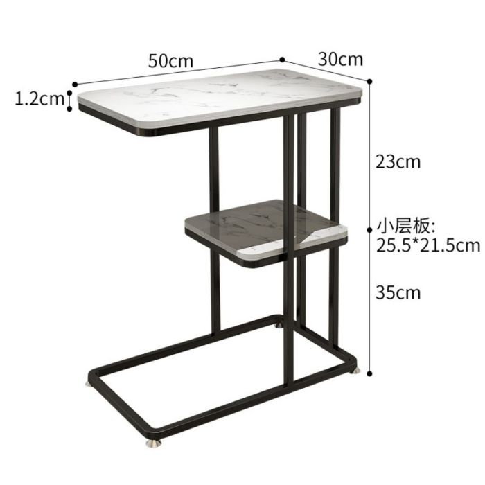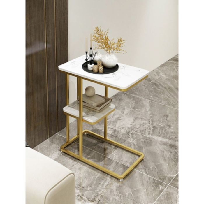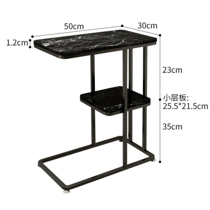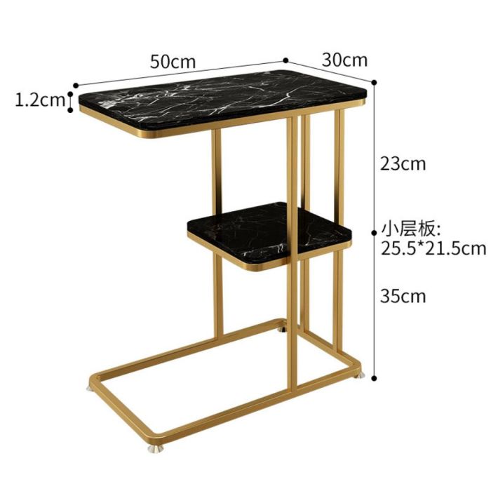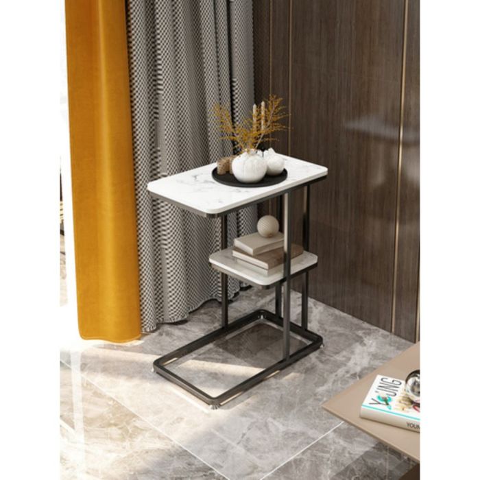 طاولة جانبية نورديك بطبقتين بسطح حجري وإطار حديد 50×30×58 سم
