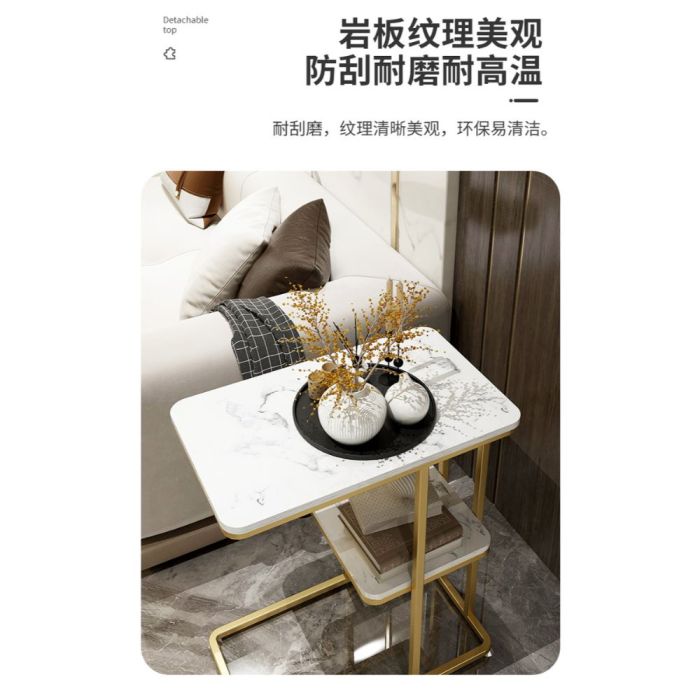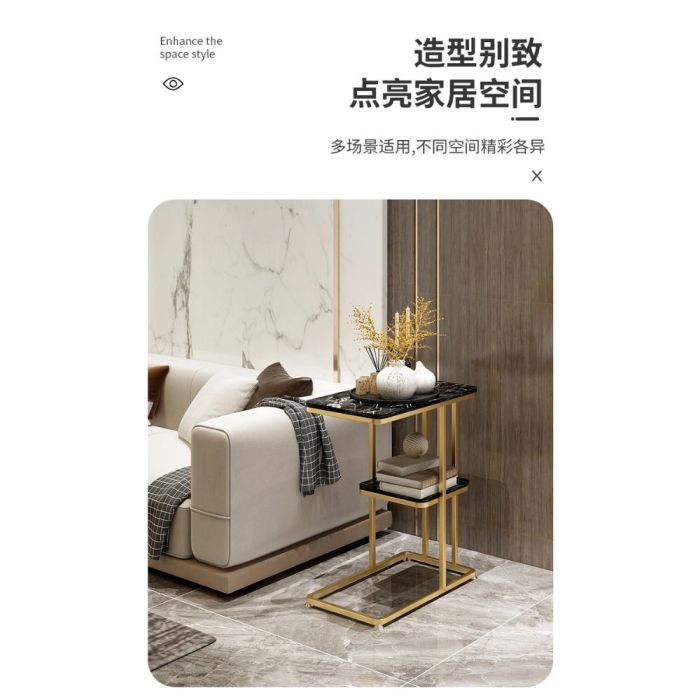 طاولة جانبية نورديك بطبقتين بسطح حجري وإطار حديد مصنوعة من حجر صناعي متين مع إطار حديد قوي، تصميم بطبقتين يوفر مساحة إضافية للترتيب، قاعدة مستقرة بثبات عالي، تضيف لمسة عصرية أنيقة للمكان