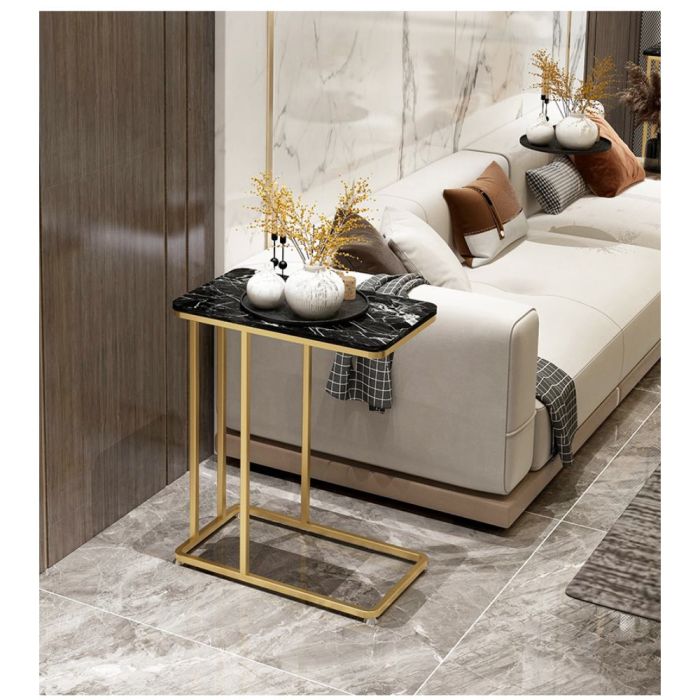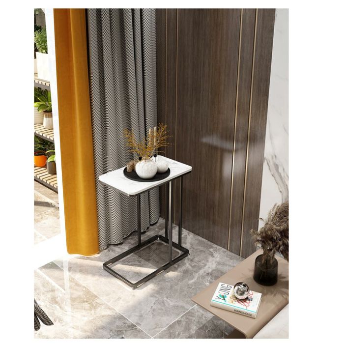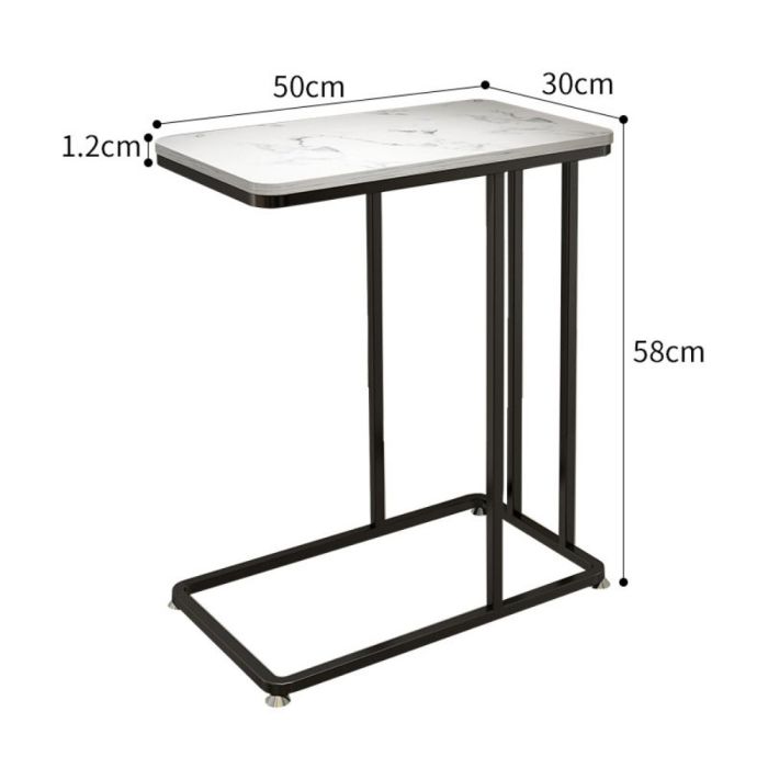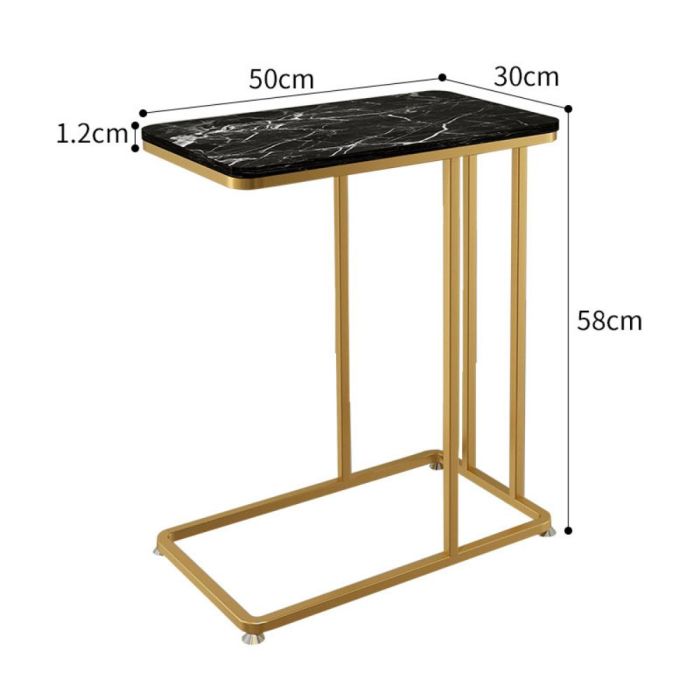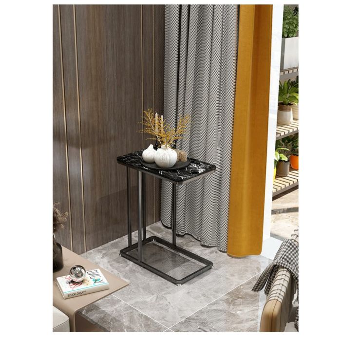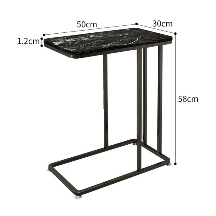 - طاولة جانبية نورديك بسطح حجري وإطار حديد 50×30×58 سم