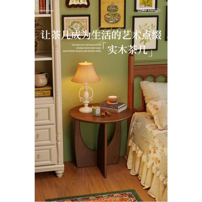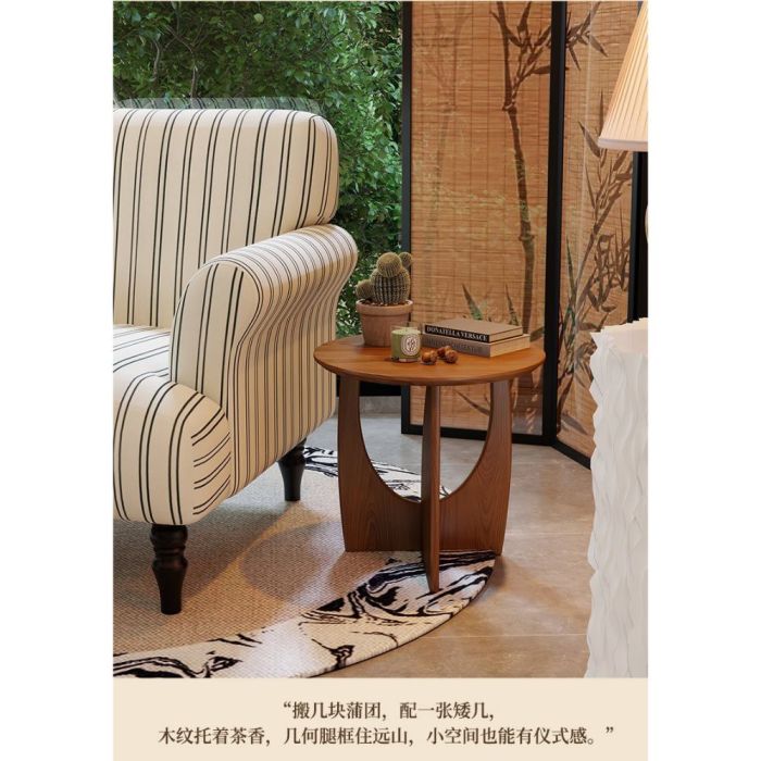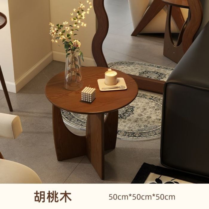 - طاولة جانبية دائرية نورديك من خشب صلب 50×50×50 سم