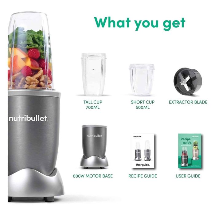 - طقم خلاط 6 قطع بقوة 600 واط - رمادي من Nutribullet