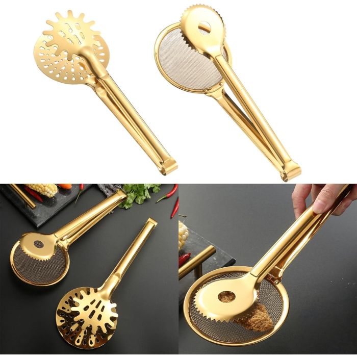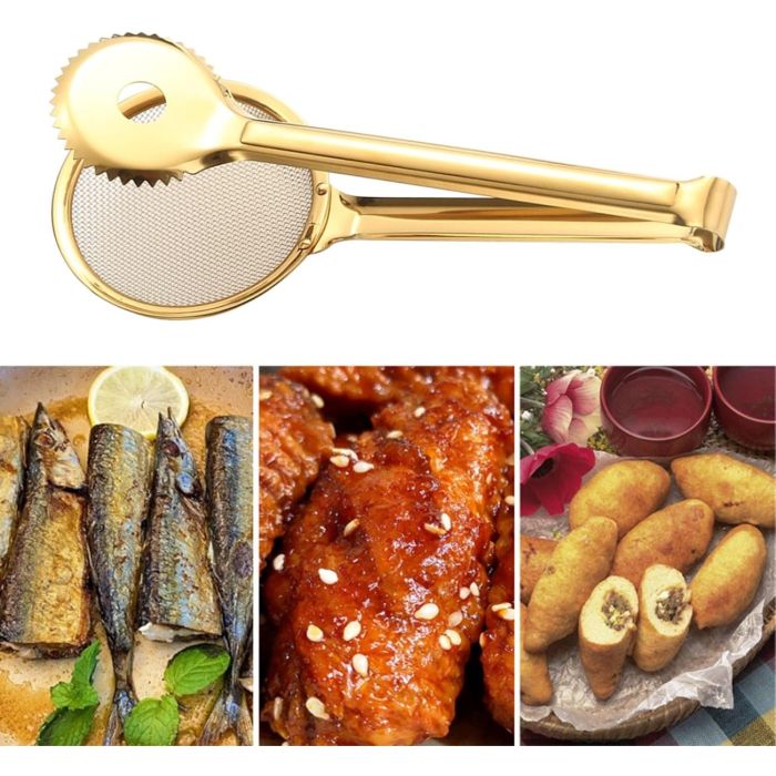 - مصنوع من الستانلس ستيل. مشبك الطعام هذا مناسب لقلي أطباق متنوعة