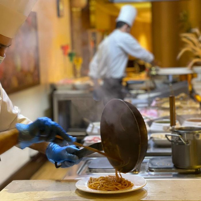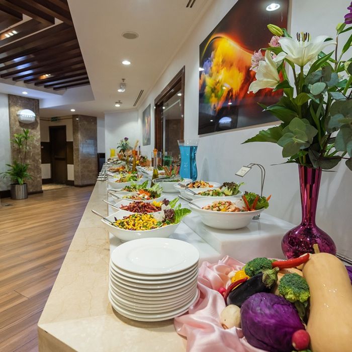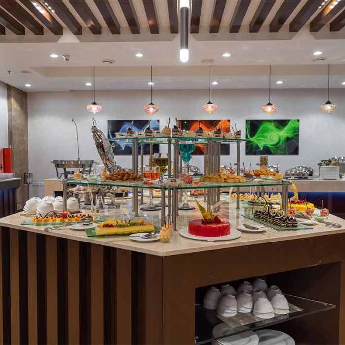 - بوفيه العشاء متوفر من الساعة 7.00 م – 11.00 م وبوفيه الافطار متوفر من الساعة 7.00 ص-11.00 ص