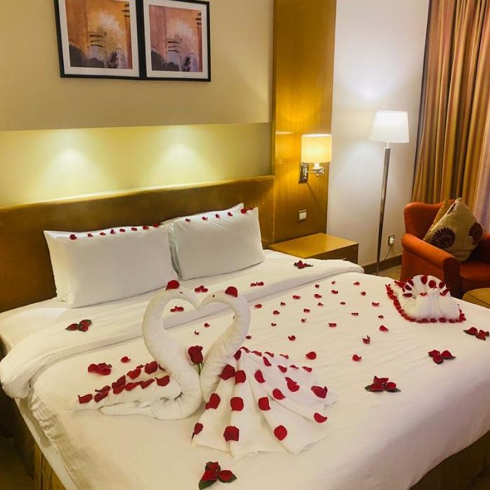 - العرض يشمل : بوفيه العشاء و الإفطار وتزيين خاص للغرفة والضيافة