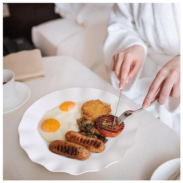 أضف لمسة من الرقي إلى مائدتك مع أطباق الحلويات. مصنوعة بحرفية عالية، هذه الأطباق صحية ومتينة. تصميمها الأبيض الأنيق يُبرز جمال أي طبق، مما يجعلها مثالية للحلويات والسوشي والسندويشات وغيرها. بفضل طبقة الطلاء الناعمة، يمكن غسل هذه الأطباق في غسالة الصحون لتنظيف سهل وسريع. كما أنها آمنة للاستخدام في الميكروويف والفرن، مما يضمن تنوع استخداماتها في المطبخ.