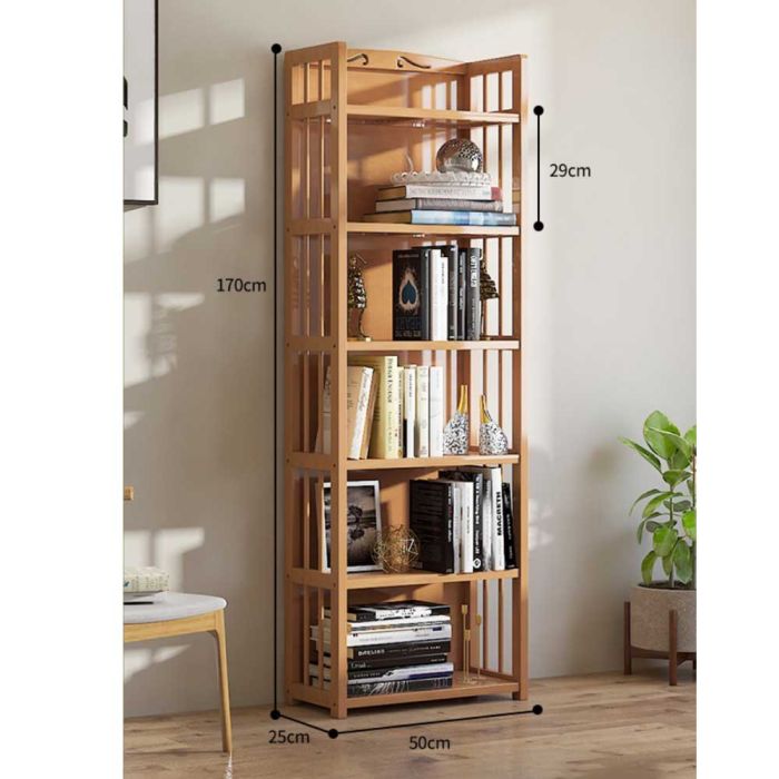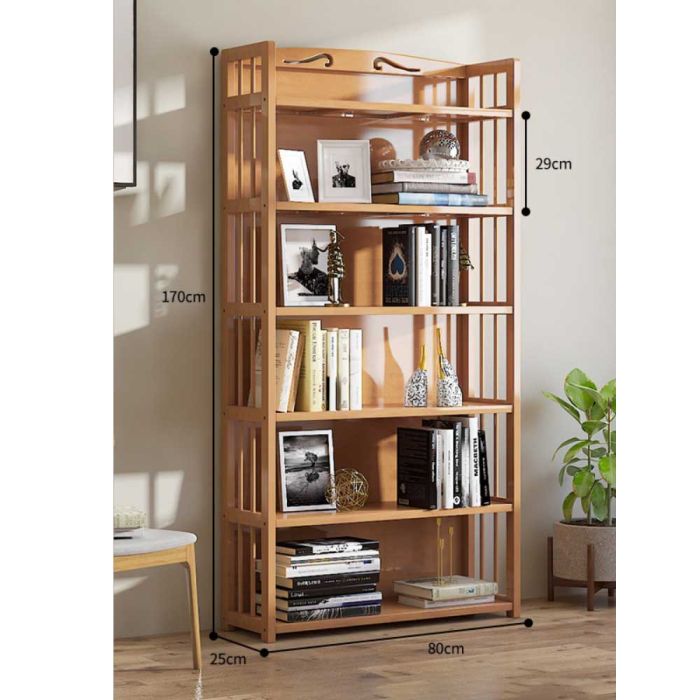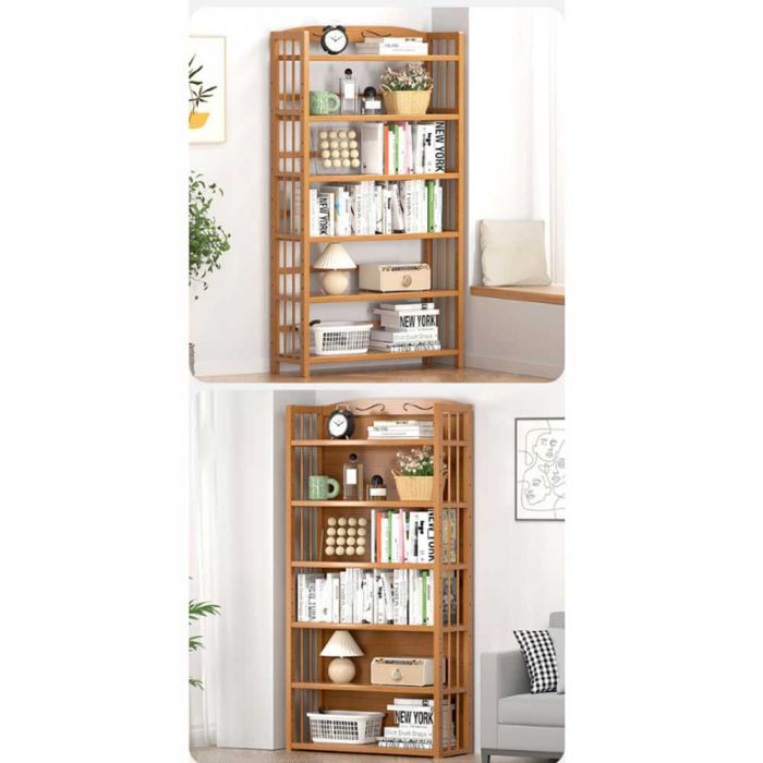 مكتبة خشبية مفتوحة 6 طبقات مصنوعة من خشب خيزران طبيعي، بتصميم عصري يبرز الكتب والإكسسوارات بشكل أنيق، تساعد على تنظيم المساحة، وتضيف لمسة دافئة تناسب غرف المعيشة والدراسة