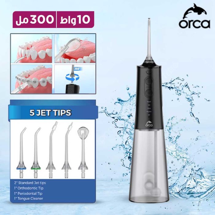 - جهاز لاسلكي لتنظيف الأسنان بضغط الماء 300 مل مع 5 رؤوس قابلة للتبديل من Orca