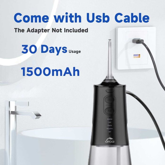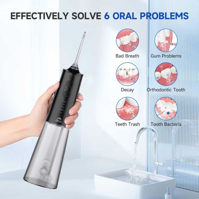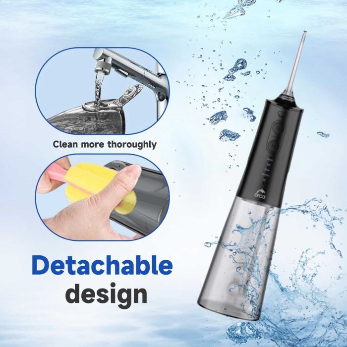 جهاز لاسلكي لتنظيف الأسنان بضغط الماء 300 مل مع 5 رؤوس قابلة للتبديل من Orca