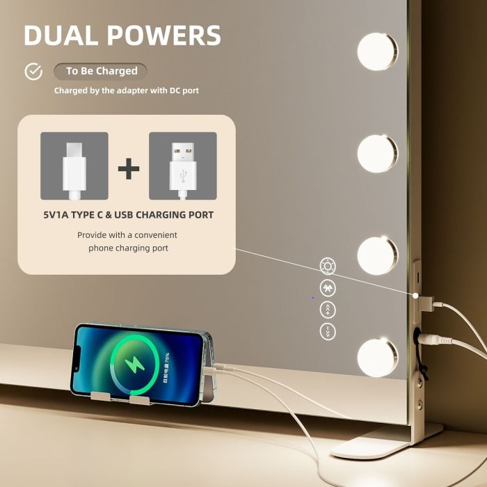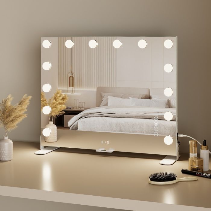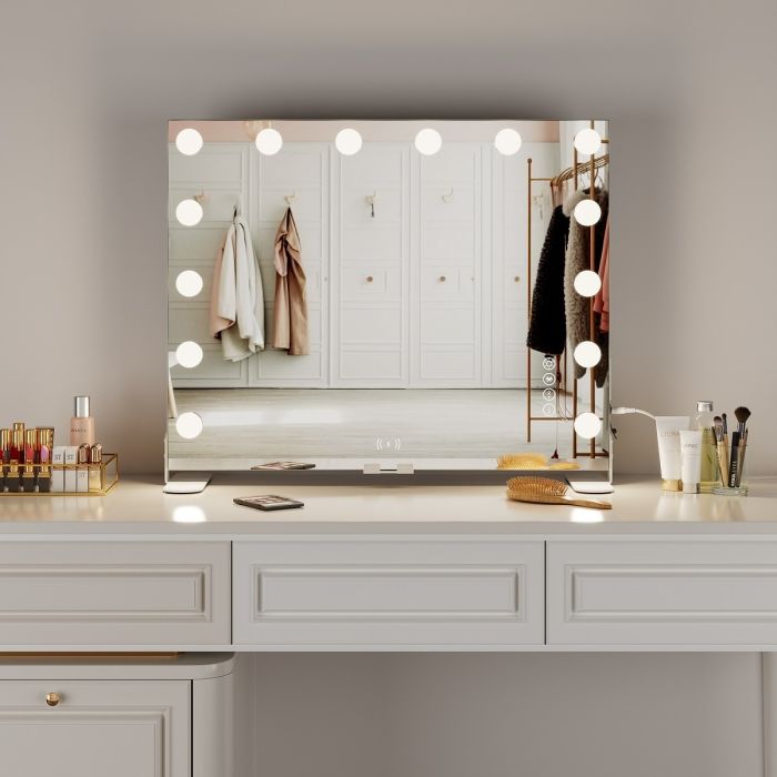 - مرآة Hollywood بإضاءة LED مع بلوتوث وشحن لاسلكي من Orca