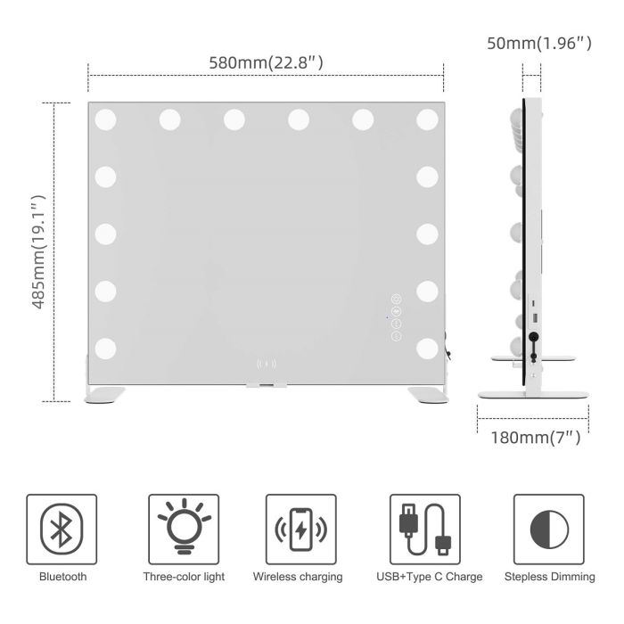 توفر مرآة Orca Hollywood تجربة متكاملة للعناية اليومية بفضل تصميمها العصري ووظائفها الذكية. تأتي بإضاءة LED بثلاثة ألوان مع إمكانية التحكم في شدة الإضاءة عبر اللمس، مما يتيح لك اختيار الإضاءة المناسبة لكل استخدام. تدعم خاصية البلوتوث لتشغيل الموسيقى أثناء الاستخدام، بالإضافة إلى شاحن لاسلكي مدمج لشحن هاتفك بسهولة. كما تحتوي على قاعدة للهاتف ومنفذي USB وType-C للشحن المزدوج، مما يجعلها خيارًا عمليًا ومثاليًا للاستخدام اليومي في غرف النوم أو صالونات التجميل.