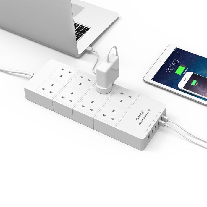 صفقة اليوم هي وصلة اشتراك كهربائية مع 6 منافذ تيار متردد و 5 منافذ USB – أبيض من Orico