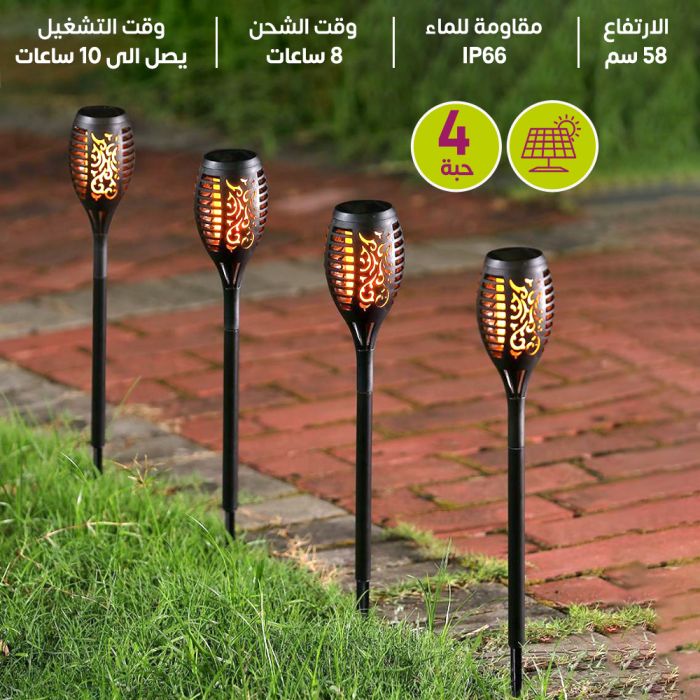 - طقم إضاءة خارجية للحديقة بالطاقة الشمسية على شكل لهب 4 حبة