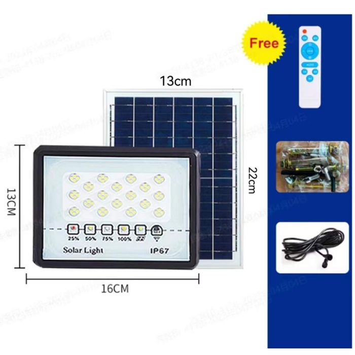 - مصباح إضاءة LED خارجي مقاوم للماء يعمل بالطاقة الشمسية قوة 60 واط
