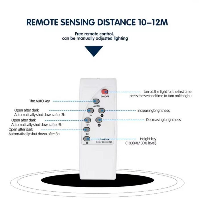 - مستشعر ضوء تلقائي يكتشف الغروب ويشغل الإضاءة تلقائيًا ثم يطفئها عند الفجر لتشغيل بدون تدخل..