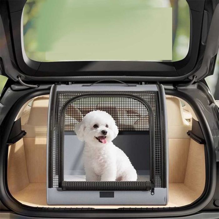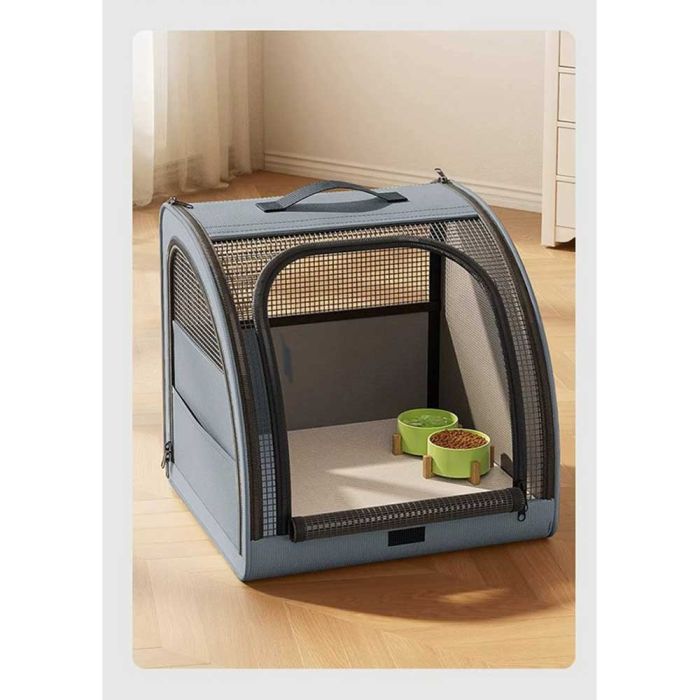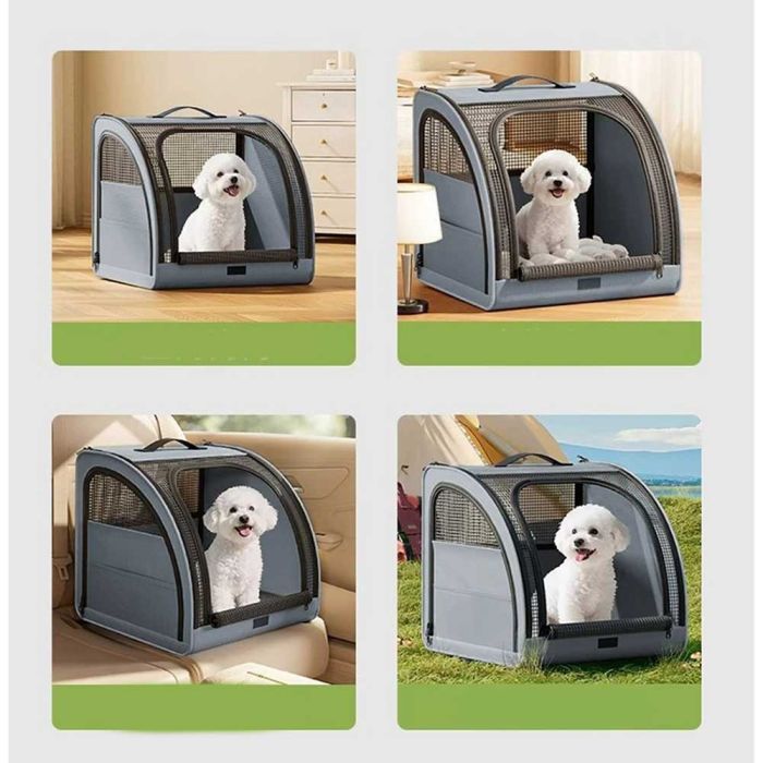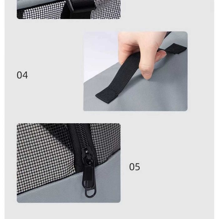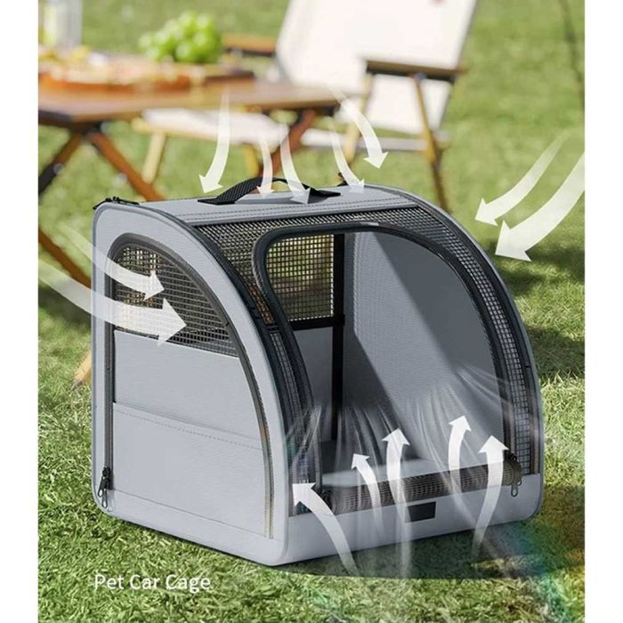 حقيبة اكسفورد لنقل الحيوانات الأليفة مصنوعة من خامات متينة، توفر تهوية مريحة بفضل النوافذ الشبكية، تصميم قابل للطي وسهل الحمل، مناسبة للاستخدام داخل السيارة أو أثناء التنقل مع حيوانك الأليف