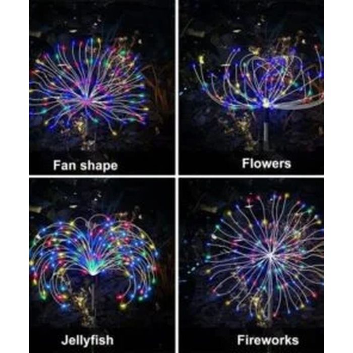 - مصباح الألعاب النارية الشمسي يستخدم أسلاكًا نحاسية مرنة، يمكنك من خلالها تشكيل أشكالك المفضلة بنفسك، مثل الزهور والأشجار والألعاب النارية والقلوب والكرات والعجلات، إلخ.