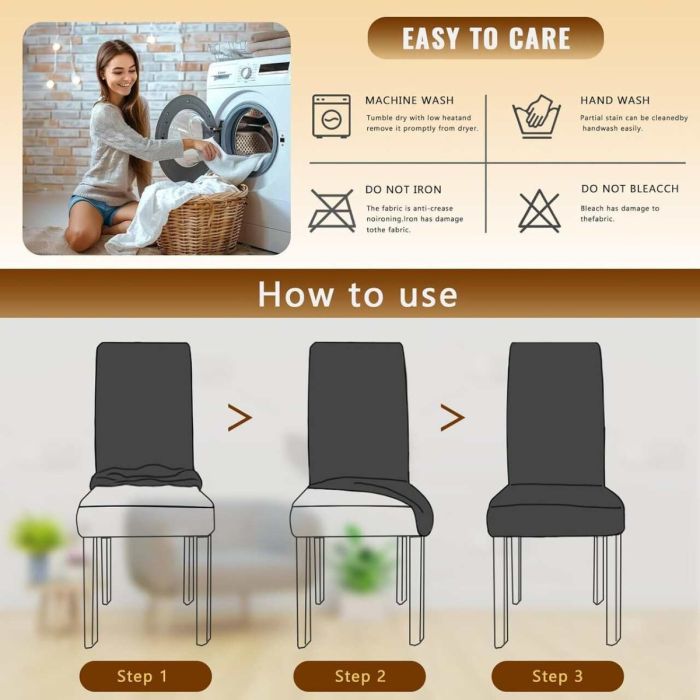 أضف لمسة من الأناقة والحماية إلى منطقة الطعام بكل سهولة. تلتف هذه الأغطية حول الكراسي بفضل قماش الجاكار المطاطي الناعم مما يمنح مظهراً متجدداً يدوم طويلاً. الحواف المطاطية الكاملة تمنح تثبيتاً محكماً يمنع الانزلاق أو التجعد أثناء الوجبات أو المناسبات. يسهل تركيبها وغسلها في الغسالة وتحمي الكراسي من الانسكابات والبقع وعبث الأطفال وخدوش الحيوانات الأليفة مع إضافة لمسة راقية على ديكور المنزل.