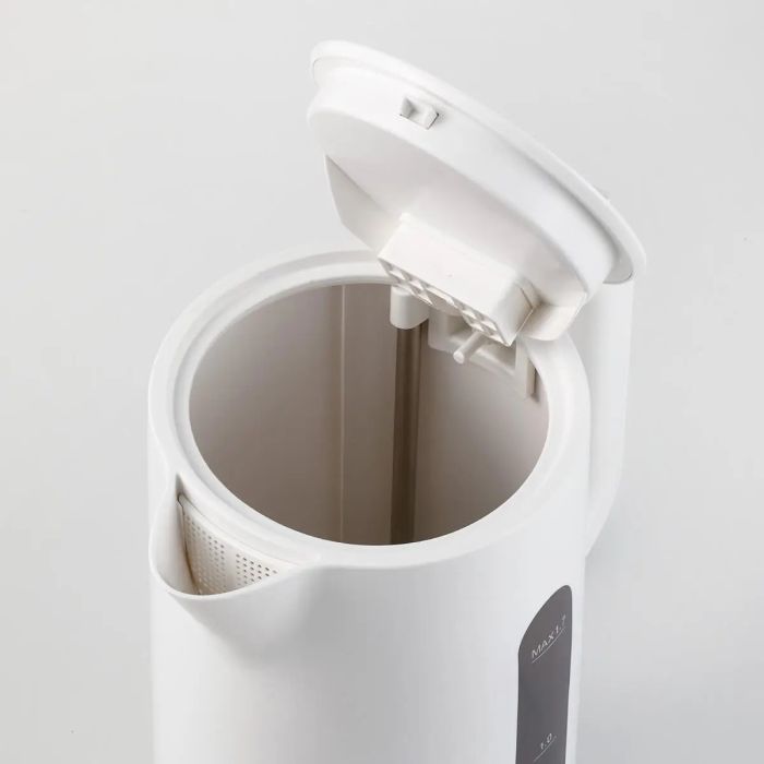 غلاية باناسونيك الكهربائية تتميز بتصميم أسطواني عصري يناسب أي مطبخ. سهلة الاستخدام مع غطاء كبير يسهل التنظيف وإزالة الترسبات. مزودة بمؤشر LED لغليان الماء، وفلتر مضاد للتكلس يحافظ على مياه نقية وصحية. الغطاء يُفتح بزر واحد على المقبض، ومؤشر مستوى الماء يسمح بمراقبة كمية الماء بسهولة