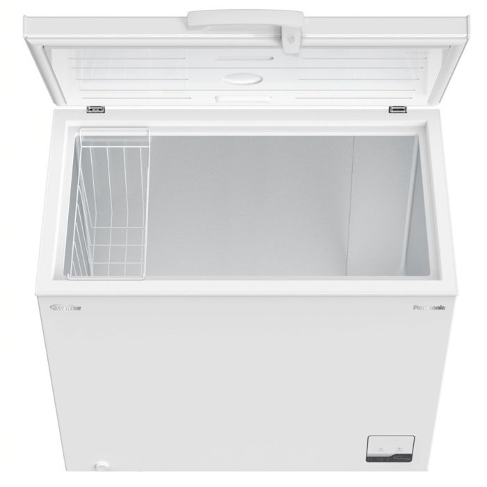 فريزر أفقي من باناسونيك بسعة 299 لتر مع تحكم إلكتروني وإضاءة داخلية لتخزين آمن وعملي للأطعمة.