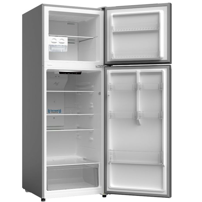 ثلاجة باناسونيك بتصميم فريزر علوي بسعة 348 لتر مع تقنية إنفرتر وتبريد محيطي لحفظ الطعام بشكل صحي ومنظم.
