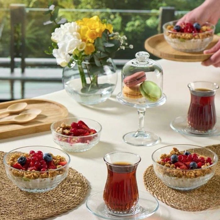 استمتع بتجربة شاي مميزة مع هذا الطقم الزجاجي المتين من Pasabahce، المصنوع من زجاج صحي خالٍ من الرصاص. التصميم العصري والشفاف يضيف لمسة أنيقة لمائدتك، بينما يسهل تنظيفه وتخزينه، ليجعل كل جلسة شاي يومية أكثر متعة وسهولة.