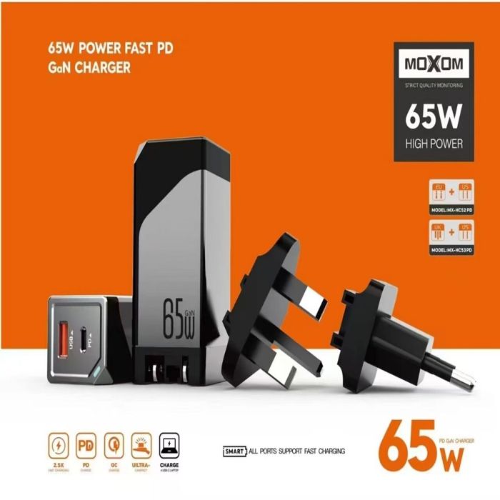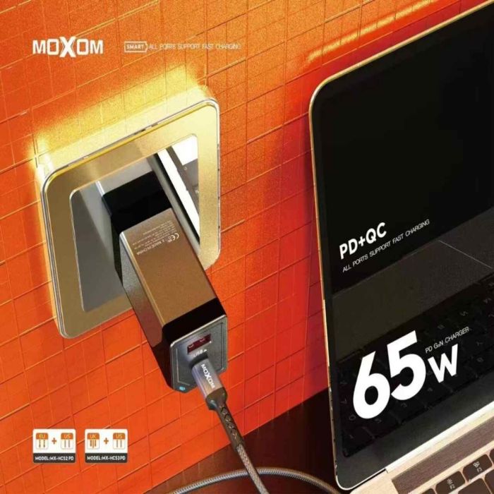 - محول شحن سريع GaN قوة 65 واط من Moxom