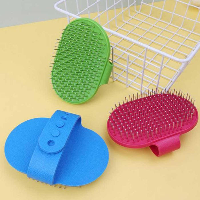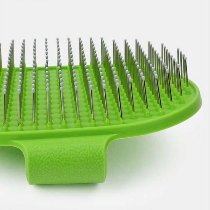 فرشاة تدليك الحيوانات الأليفة برؤوس معدنية مستديرة مصنوعة من خامة مرنة لطيفة على البشرة، تساعد على تنظيف الشعر وإزالة التشابك بسهولة، تمنح تدليكاً مريحاً للحيوان