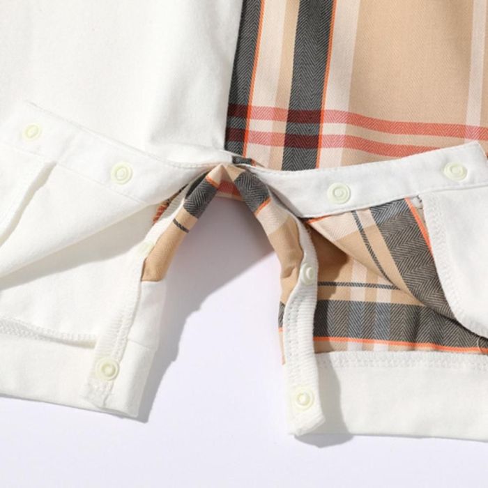 أفرول ولادي أنيق مصنوع من خامة ناعمة ومريحة، يتميز بنقشة مربعات كلاسيكية تضيف لمسة عصرية لإطلالة طفلك، تصميمه العملي بقطعة واحدة يمنح سهولة في اللبس وحرية في الحركة، مثالي للارتداء اليومي أو المناسبات البسيطة