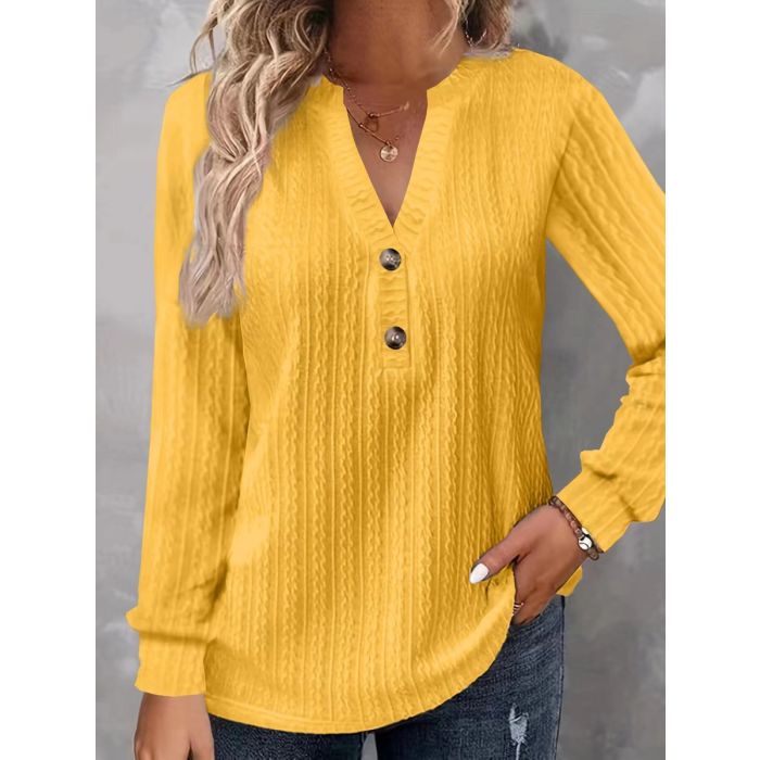 بلوزة خريفى سادة بأكمام طويلة وفتحة رقبة على شكل حرف V للسيدات