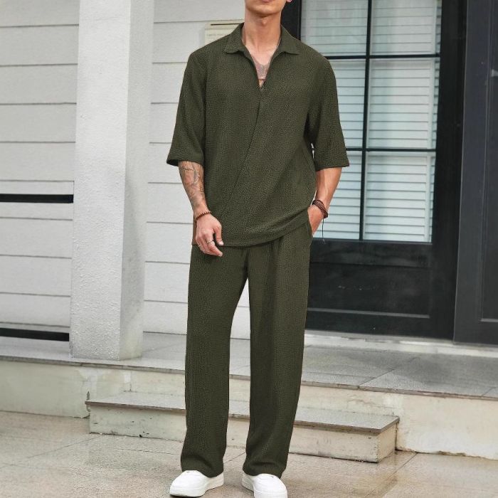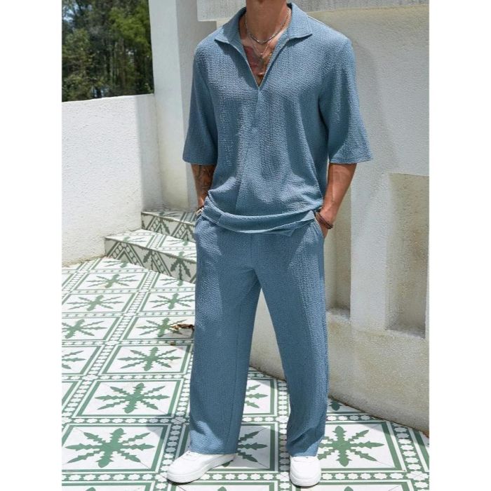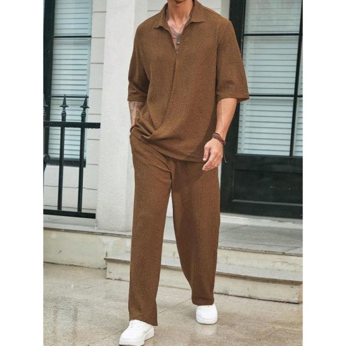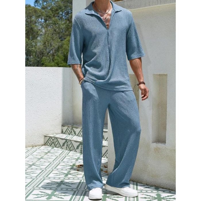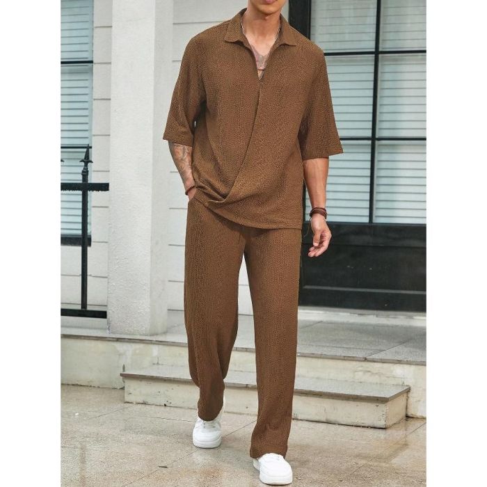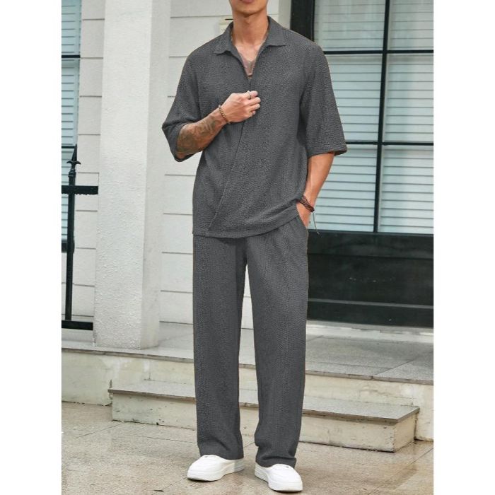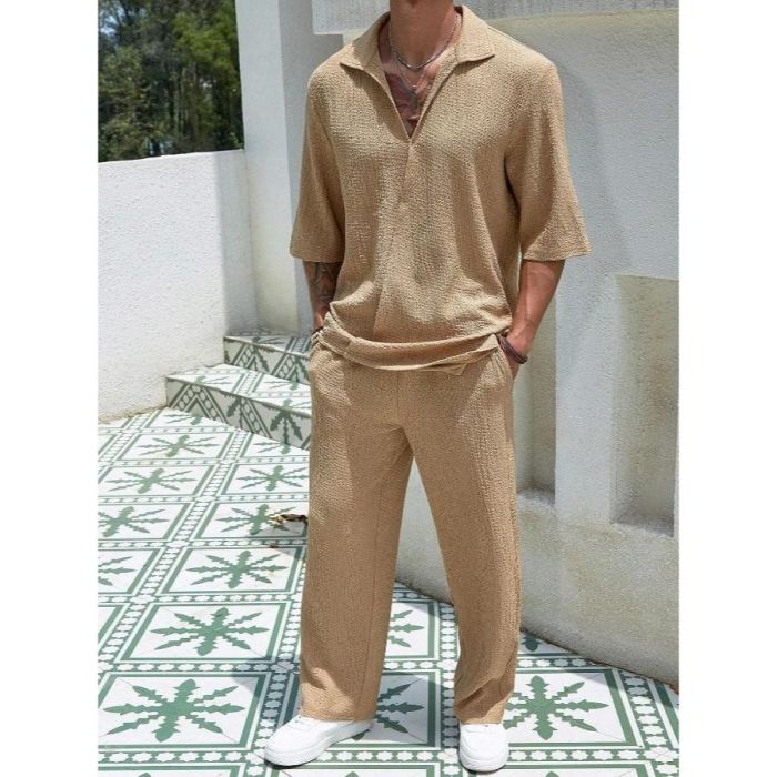 - طقم كاجوال سادة بأكمام قصيرة وتصميم أنيق للرجال
