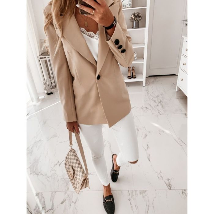 - جاكيت سادة بأكمام طويلة وأزرار للسيدات