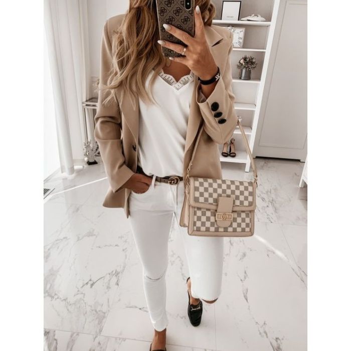 أضيفي لمسة من الأناقة إلى خزانة ملابسك مع هذا الجاكيت الفورمال. يتميز بتصميم سادة أنيق يبرز جمال القصّة ويمنحك مظهراً متجدداً. القصة تضفي لمسة أنثوية عصرية، مما يجعله خياراً مثالياً للمرأة العملية التي تبحث عن التميز في بيئة العمل أو المناسبات الرسمية. يمكن تنسيقه بسهولة مع بنطال كلاسيكي، تنورة، أو حتى فستان بسيط لإطلالة متكاملة. مصنوع من خامة عالية الجودة تضمن الراحة طوال اليوم، مع لمسات دقيقة تعكس العناية بالتفاصيل.صفقة اليوم هي جاكيت سادة بأكمام طويلة وأزرار للسيدات