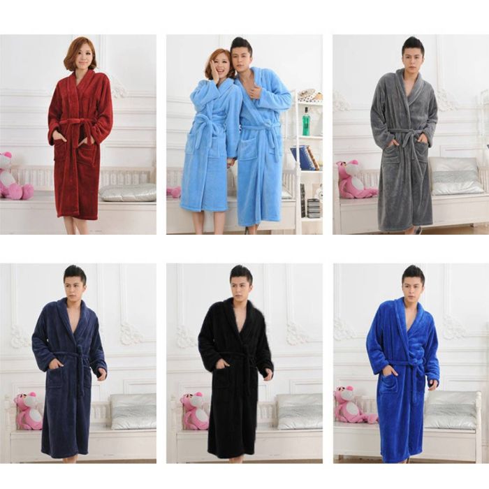 - روب حمام فندقي سادة بأكمام طويلة للرجال والسيدات