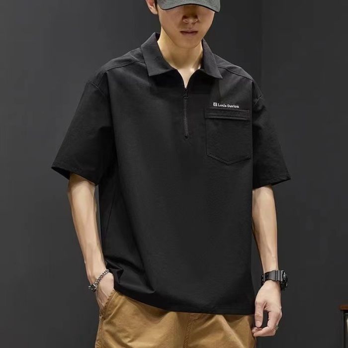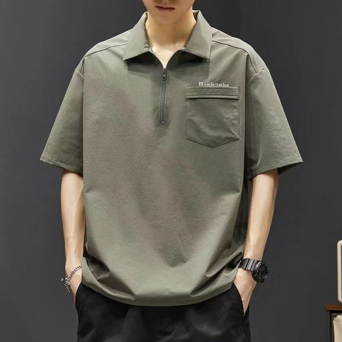 - تيشيرت بولو فضفاض سادة بأكمام قصيرة من الحرير الجليدي للرجال