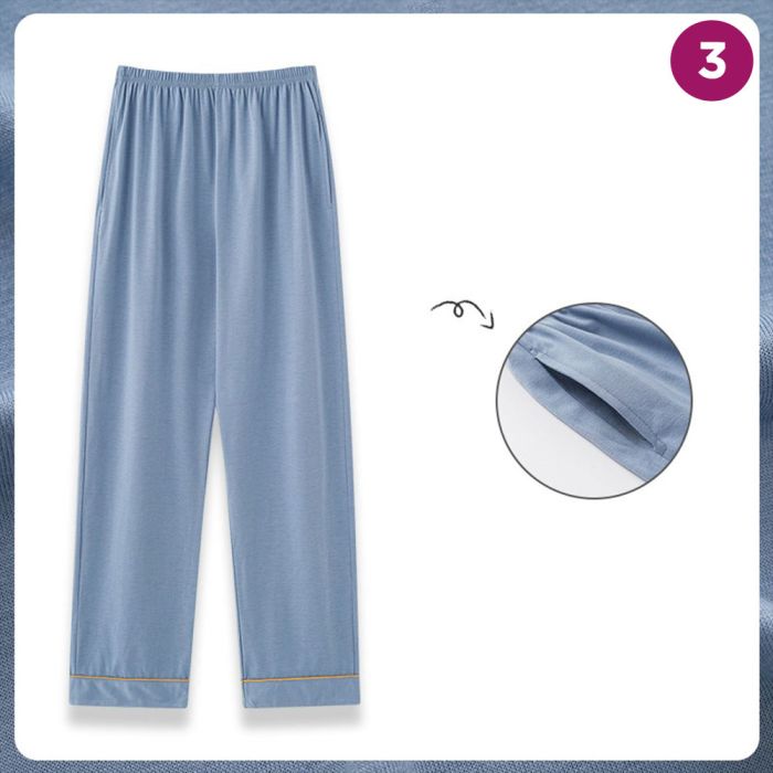 - بنطال نوم طويل فضفاض سادة للرجال
