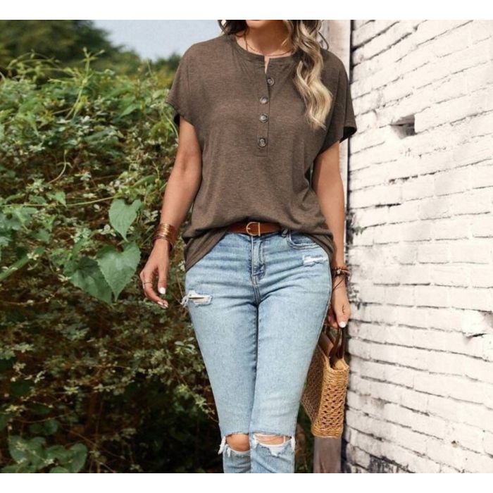 - بلوزة صيفى سادة بأكمام قصيرة وأزرار للسيدات