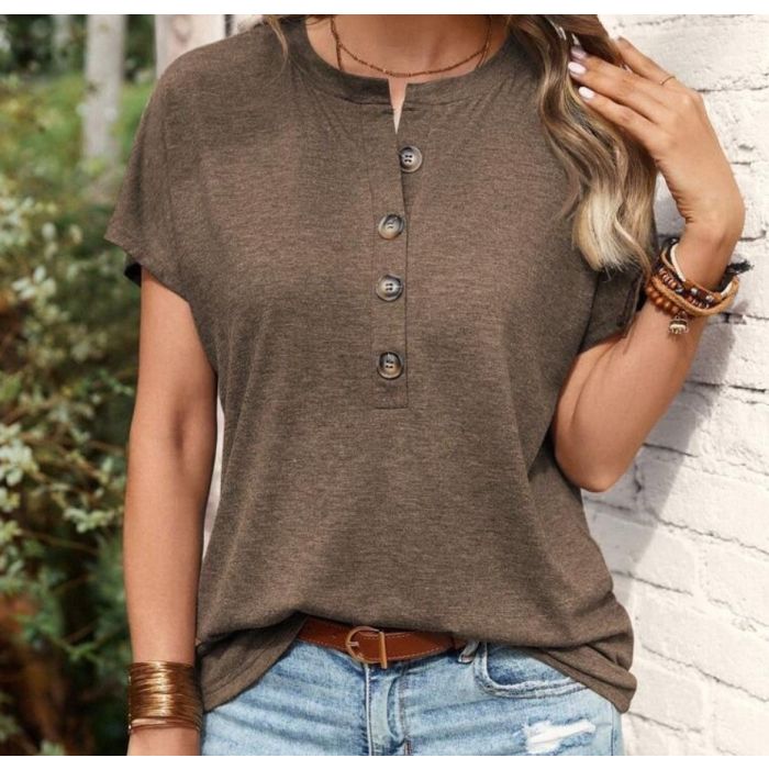 بلوزة صيفى سادة بأكمام قصيرة وأزرار للسيدات