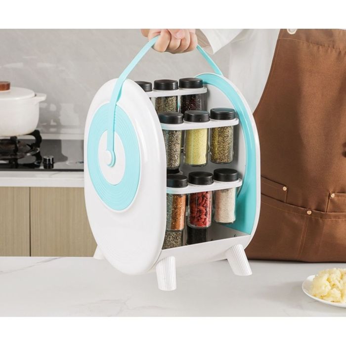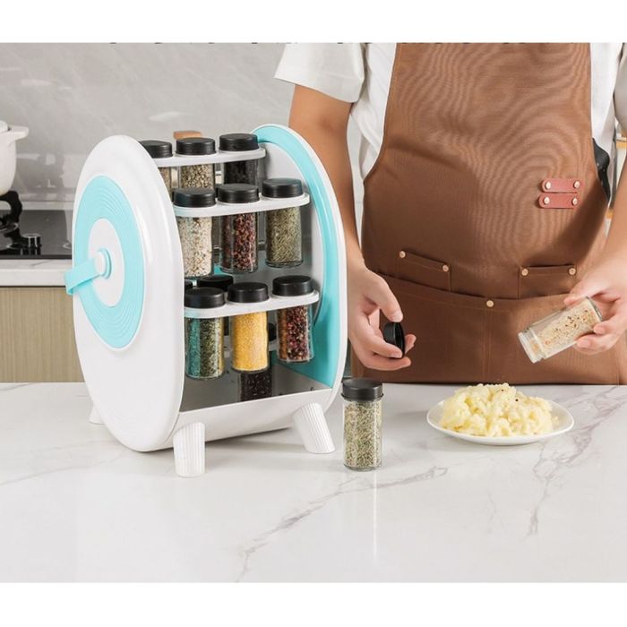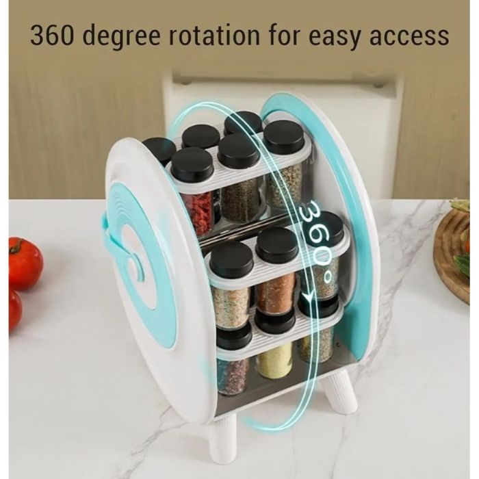 - منظم توابل بلاستيكي دوار 360 درجة مع 18 عبوة توابل