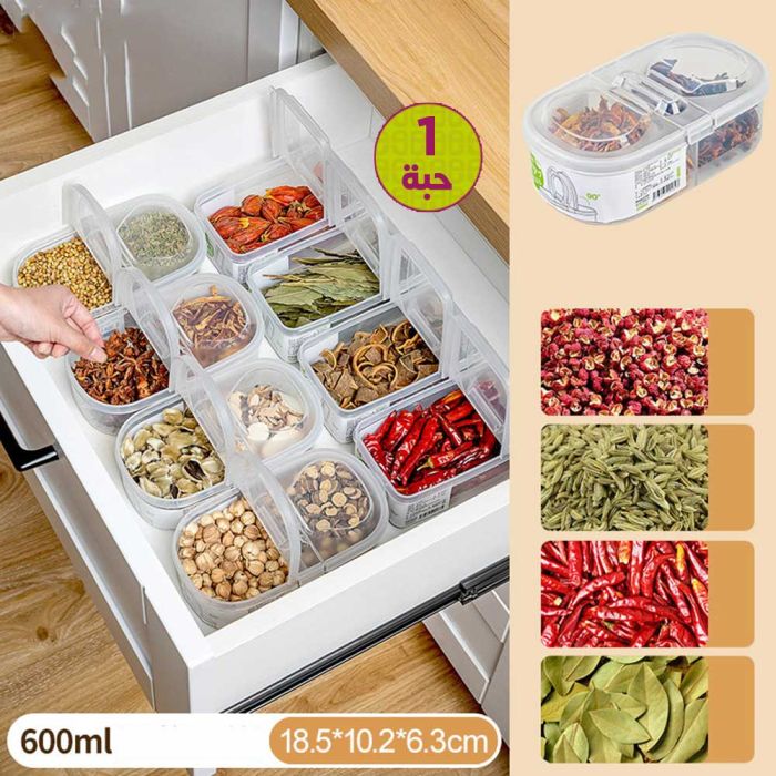 - علبة تخزين توابل بلاستيكية مزدوجة 600 مل