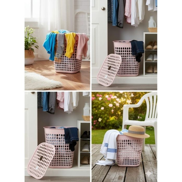 صفقة اليوم هي سلة غسيل بلاستيك بغطاء 55×35×45 سم