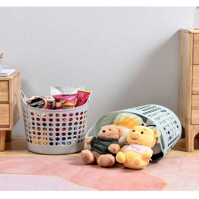 سلة غسيل بلاستيك بفتحات تهوية مصنوعة من بلاستيك متين، تمنح تهوية مستمرة للحفاظ على الجفاف، وتوفر مساحة واسعة لتجميع الغسيل، وتأتي بمقابض مريحة للتنقل، وتناسب الاستخدام اليومي في أي غرفة، وتجمع الملابس بسهولة دون فوضى