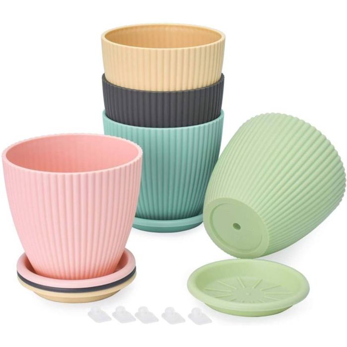 - مجموعة من 5 أواني زهور دائرية بلاستيكية