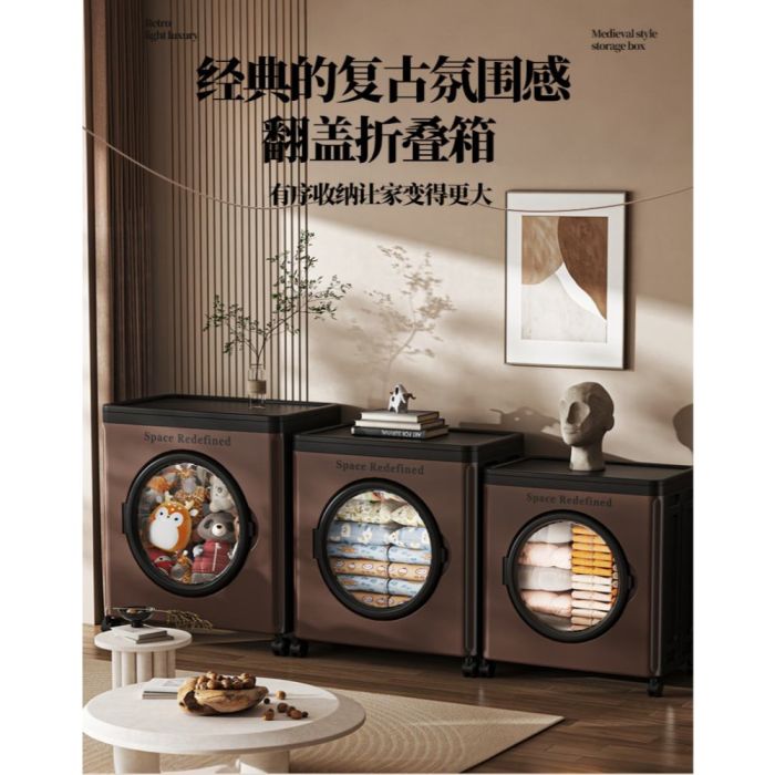 - صندوق تخزين ملابس بلاستيك شفاف بغطاء وعجلات