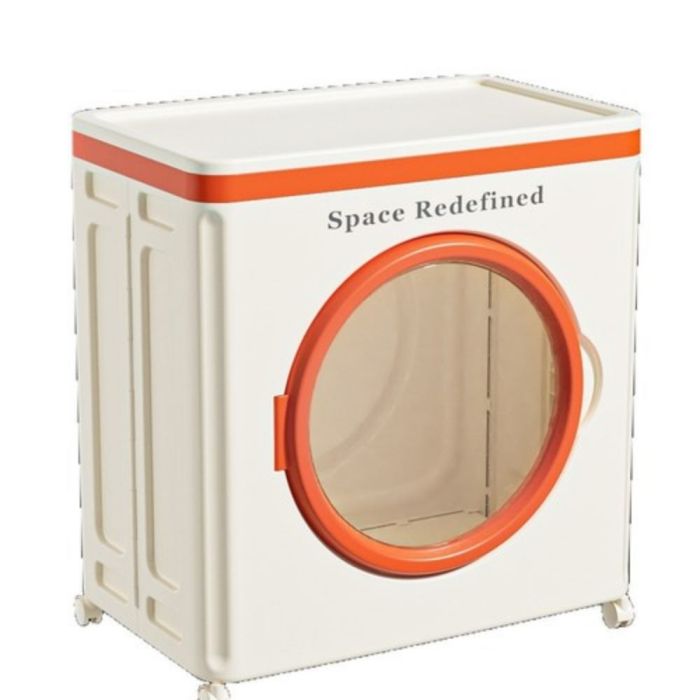 صندوق تخزين ملابس بلاستيك شفاف بغطاء وعجلات مصنوع من خامة متينة، يوفر سعة واسعة لتنظيم الملابس والأغراض، باب أمامي شفاف لسهولة الرؤية، تصميم مزود بعجلات للحركة السلسة داخل المنزل