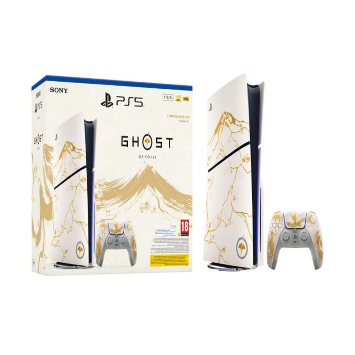 - جهاز بلايستيشن 5 Slim Disk إصدار Ghost of Yotei مع 1 تيرابايت SSD بنظام CD من Sony