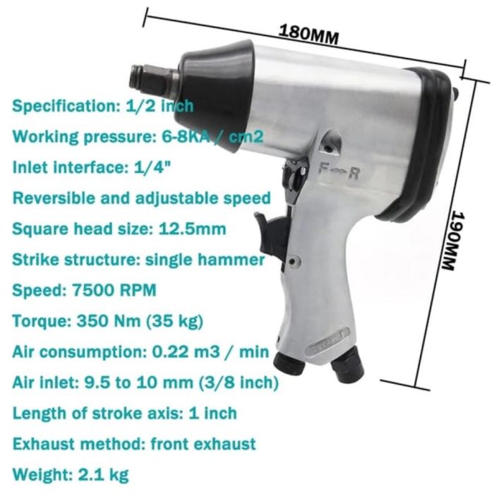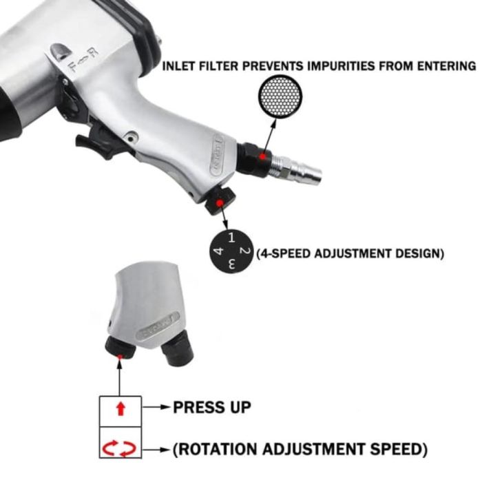- مفتاح ربط هوائي 1/2 بوصة مع طقم أدوات 10 قطع