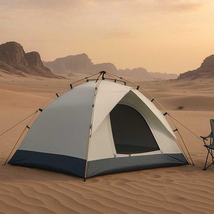 استمتع بتجربة تخييم مريحة مع خيمة مقاومة للماء، تتسع حتى 3 أشخاص، وتتميز بتصميم مميز وقوي. مصممة لتحمل الظروف الجوية المتقلبة، توفر لك حماية وراحة استثنائية في كل مغامرة